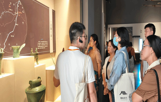 在博物馆内,教师们首先参观了“江西古代历史文化展”。展览就江西在政治、经济、文化等多方面的发展展现了中华文明的博大精深。展品背后所承载的历史故事和工艺技巧,让教师们领略到了中华优秀传统文化的魅力。随后,大家又参观了“江西古代陶瓷文化展”。“万年窑火,千年瓷都”,从远古至先秦的陶瓷源地到瓷耀寰宇的明清时期,江西陶瓷文化通达古今,薪火相传,似赣江水奔流生生不息,琳琅满目的瓷器让教师们全面了解了江西陶瓷文化的独特魅力,切实感受到文化自信的力量。