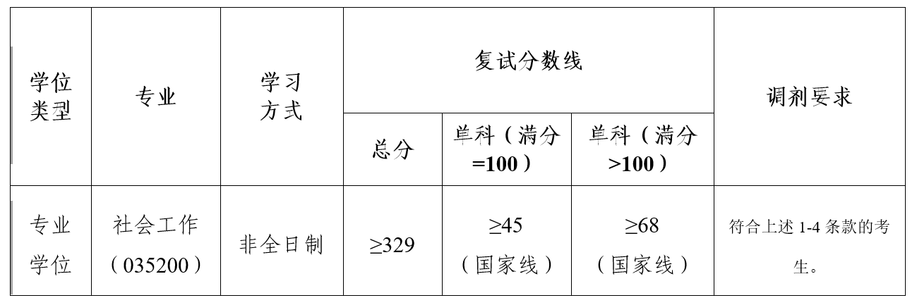 注:社会工作专业调剂余额详见全国硕士生招生调剂服务系统