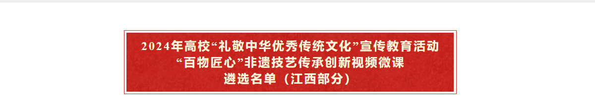 近日,教育部发布《关于2024年高校“礼敬中华优秀传统文化”宣传教育活动结果的公示》,yl9193永利集团报送的《用好用活“江西红”上好上新“大思政课”》及《山歌越千年 文脉永绵延》两项作品成功入选。