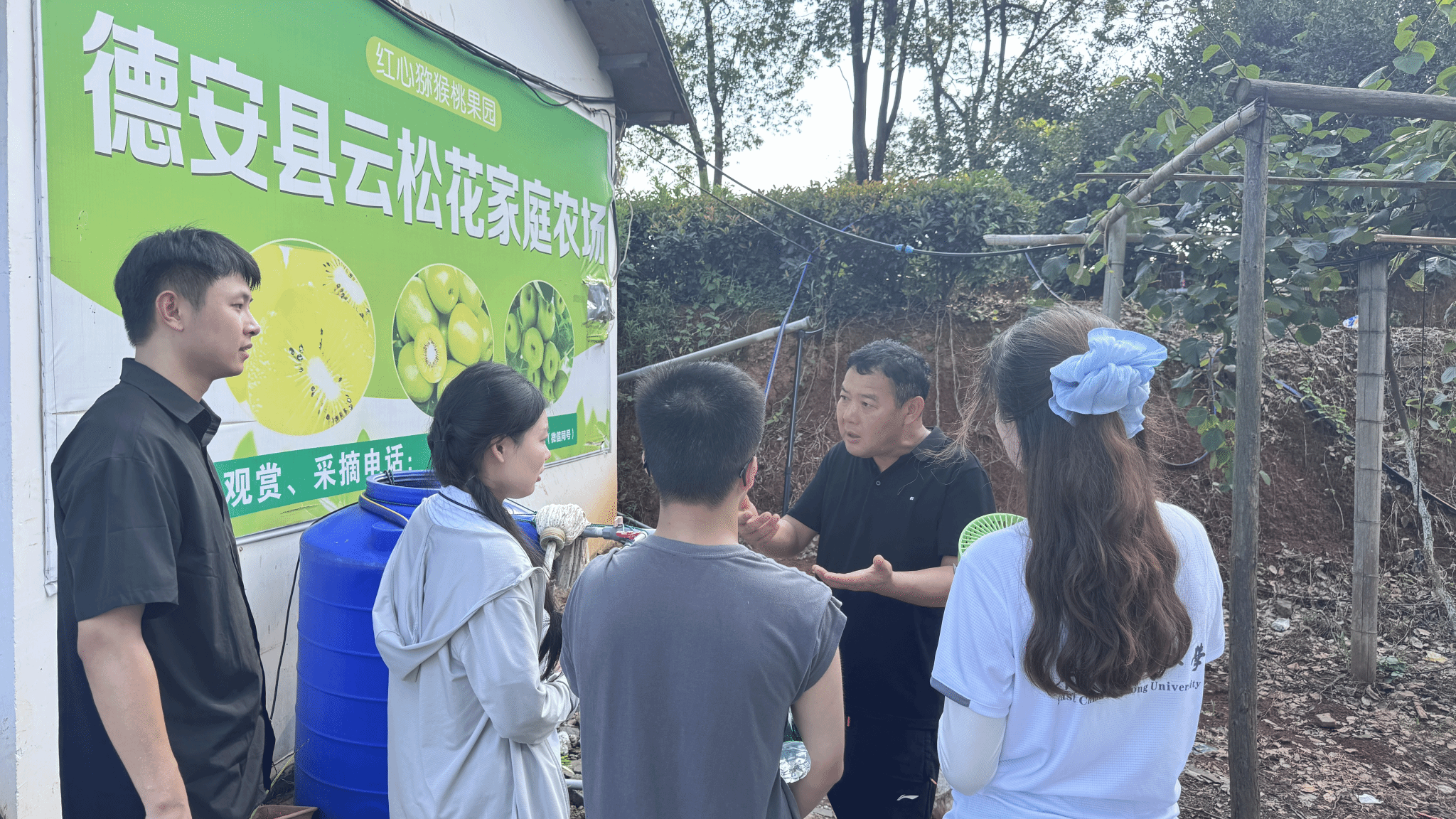 当日下午,实践队一行转赴丰林镇紫荆村,紫荆村兰江印书记结合果园发展,向队员们介绍了紫荆村依托特色农业推动乡村振兴的实践路径,让大家深刻理解到“产业兴则乡村兴”的内涵,也对乡村振兴的“密码”有了更直观的认识。队员们在兰江印的带领下,开启了一场“农耕文化与乡村振兴”的深度探寻。走进村里的葡萄园与猕猴桃园,郁郁葱葱的果树挂满了饱满的果实,队员们近距离观察果树生长状态,感受农耕劳作的辛劳与收获的喜悦。