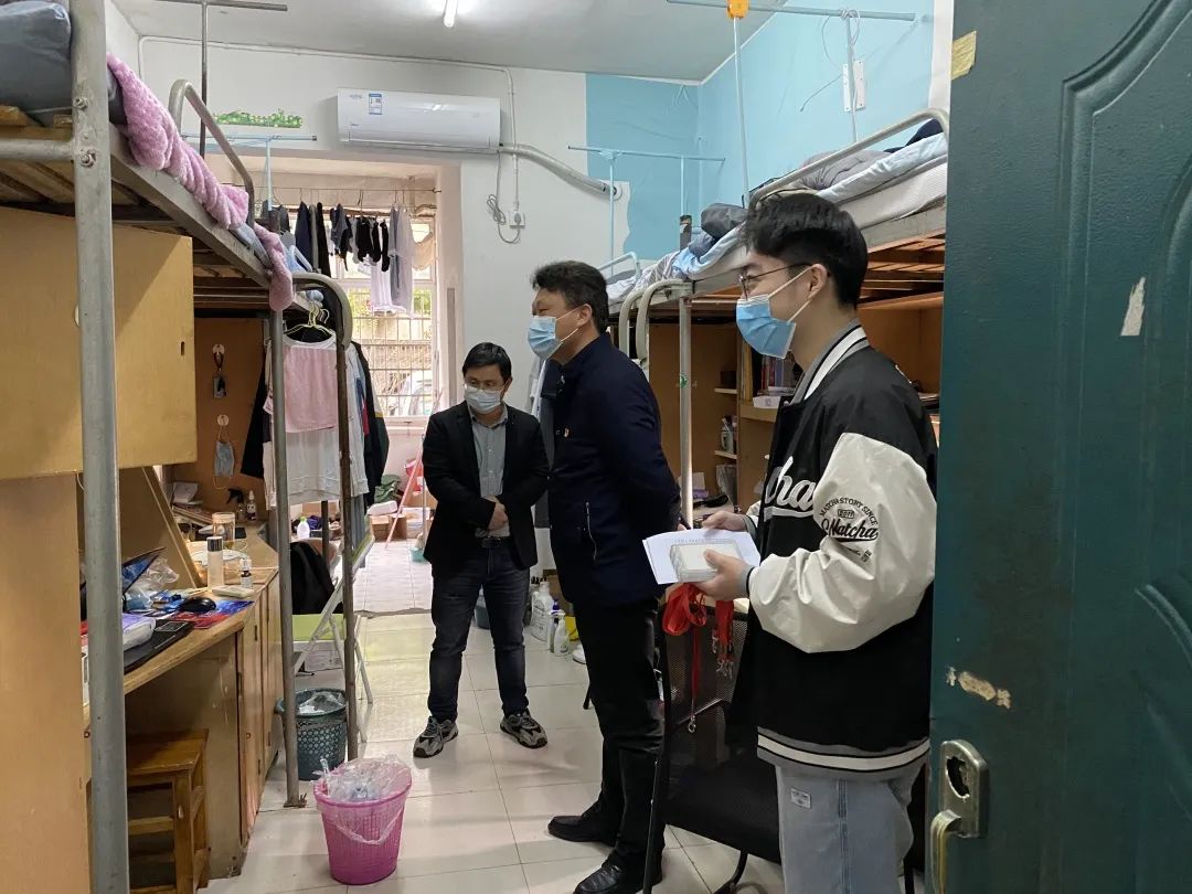 “清点学院还有多少防疫物资,缺了什么马上购置补齐”“疫情期间我们的学生不能出问题,日常管理要抓紧”“线上教学要有条不紊的开展,课堂质量不能下降”“研究生复试工作要确保万无一失,大家有什么困难及时提出来……”办公室、居民楼、学生寝室……每到一处,他详细询问师生是否有困难,防疫物资是否充足,需要学院帮助做些什么。他科学统筹安排人力、物力、财力,线上线下调度疫情防控工作,组织成立“yl9193永利集团师生党员疫情防控突击队”,牵头制定疫情防控处置预案,组织发布《致研究生家长的一封信》,确保疫情防得住、困难扛得住、人心稳得住、工作顶得住。“哪里有困难哪里就有党员的身影”,他给学生送去防疫物资、连夜挨家挨户查访核酸检测情况、参与校园疫情防控督查工作、布置打扫研究生复试机密室、购买摄像头保障教师线上教学、以党委名义为隔离点贫困生发餐食补贴,并送去学院公用便携式电脑以便其撰写开题报告......这一桩桩一件件大事小事体现了学院党委对师生的贴心与关怀,他常说:“关键时刻最考验党性,特殊时期最体现忠诚,共产党人要有豁得出去的勇气和真气,疫情不退,我不退。学院工作事无巨细,有些事情你们没有想到的,我必须先想到,作为一名党员干部,要时刻俯下身子,放下架子去做事,做实事,实做事。”
