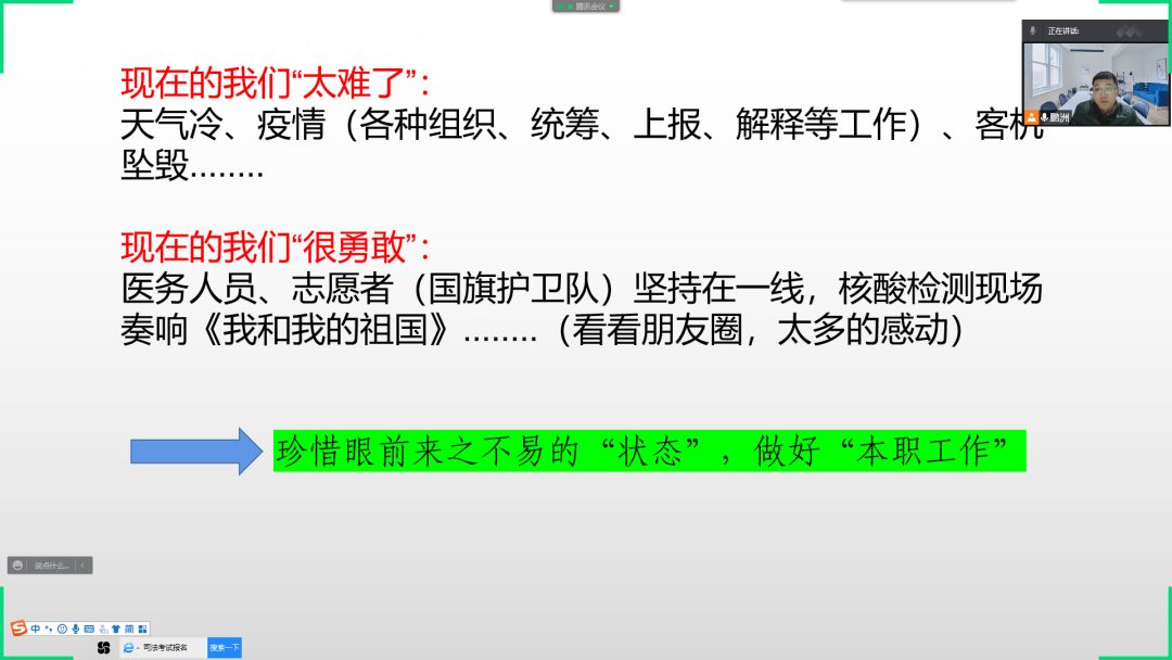 作为《马克思主义基本原理》课教师,她在教学中尤其注重入脑入心,贴近生活,贴近学生。引导学生运用哲学原理认识系列抗疫举措,理解我们为什么需要进行一轮又一轮核酸检测;教会学生辩证地看待疫情,“前途是光明的,道路是曲折的”,要端正心态,相信通过我们每一个人的齐心协力疫情终将被战胜。