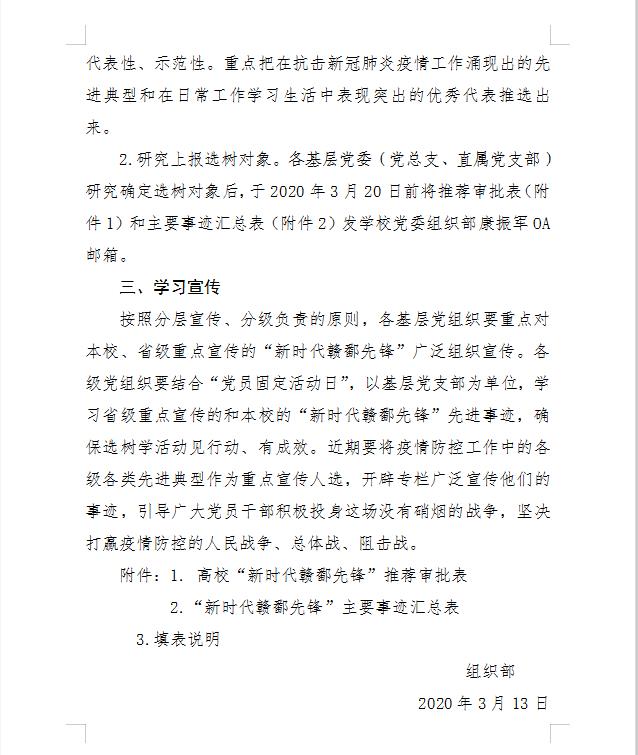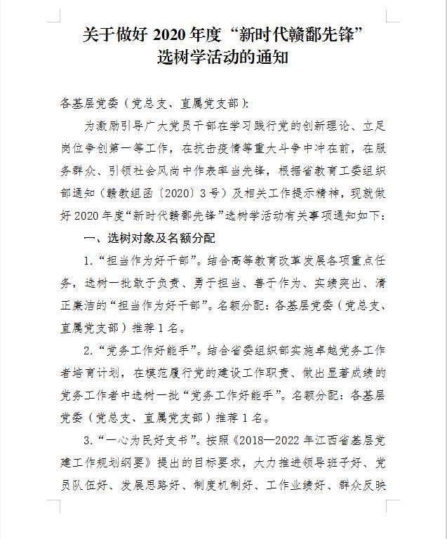 附件:《关于做好2020年度“新时代赣鄱先锋”选树学活动的通知》,通知内附表格,请下载后填写。
