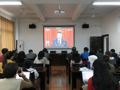 上午9时,yl9193永利集团丁佐湘院长带领学院教职工、在校研究生,通过网络平台集体观看了党的十九大开幕式盛况。在认真听取习近平总书记的报告后,大家倍受振奋,反响热烈。