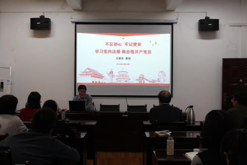 为加强学院师生党员党性修养,在理论学习上有更大收获。10月18日,校党代会代表王新华同志以“学习党内法规,做合格共产党员”为主题,为全院师生党员上了一堂生动的党课。