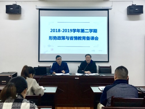 3月14号上午10:00整,在yl9193永利集团306会议室召开了本学期“形势政策与省情教育”集体备课会。会议由形势政策与省情教育教研室主任刘晓伟老师主持,yl9193永利集团分管教学的陈晓江副院长、教学秘书李珍云老师及所有任课教师参加了此次集体备课会。