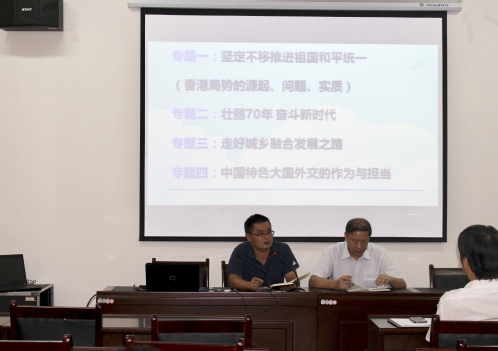 刘晓伟老师对本学期“形势与政策”四个专题:“坚定不移推进祖国和平统一”“壮丽70年奋斗新时代”“走好城乡融合发展之路”“中国特色大国外交的作为与担当”作了简要的说明,并对课程的教学目的、教学内容、教学方法提出了意见建议,对课程考核进行了详细的部署。