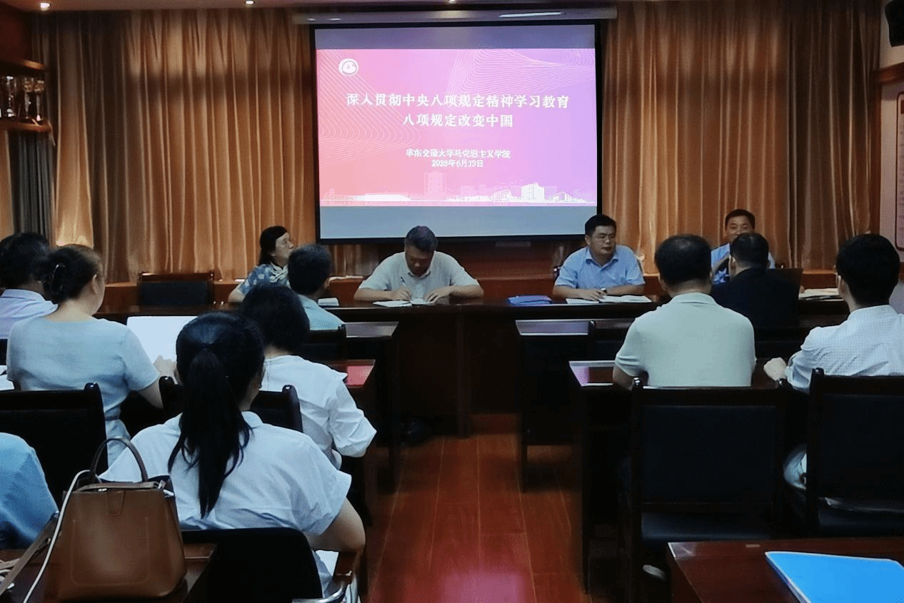 为深学细悟习近平总书记关于加强党的作风建设的重要论述,加强深入贯彻中央八项规定精神学习教育思想自觉,传达学习八项规定改变中国的经验,6月13日下午,学院党委书记陈和金以《八项规定改变中国》为题讲授专题党课,学院全体党员参加。
