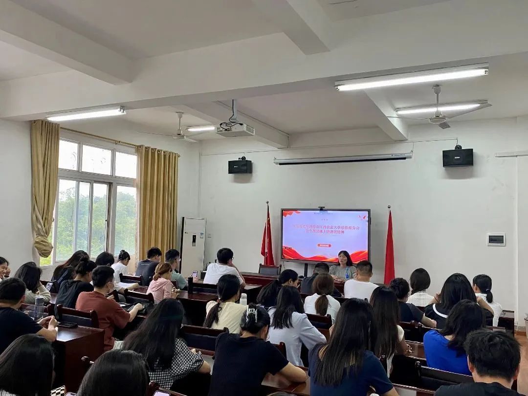 6月5日,辅导员黄梦婷通过主题班会带领研究生学习叶建春同志在江西农业大学形势报告暨专题党课上的讲话,辅导员聚焦“青年的使命”,鼓励同学们要牢记党的谆谆教诲,不负党的殷切期望,既要仰望星空,更要脚踏实地,在不断地学习历练中,端正品德、丰富学识、增长才干、开阔视野,练就担当作为的硬脊梁、铁肩膀、真本事。