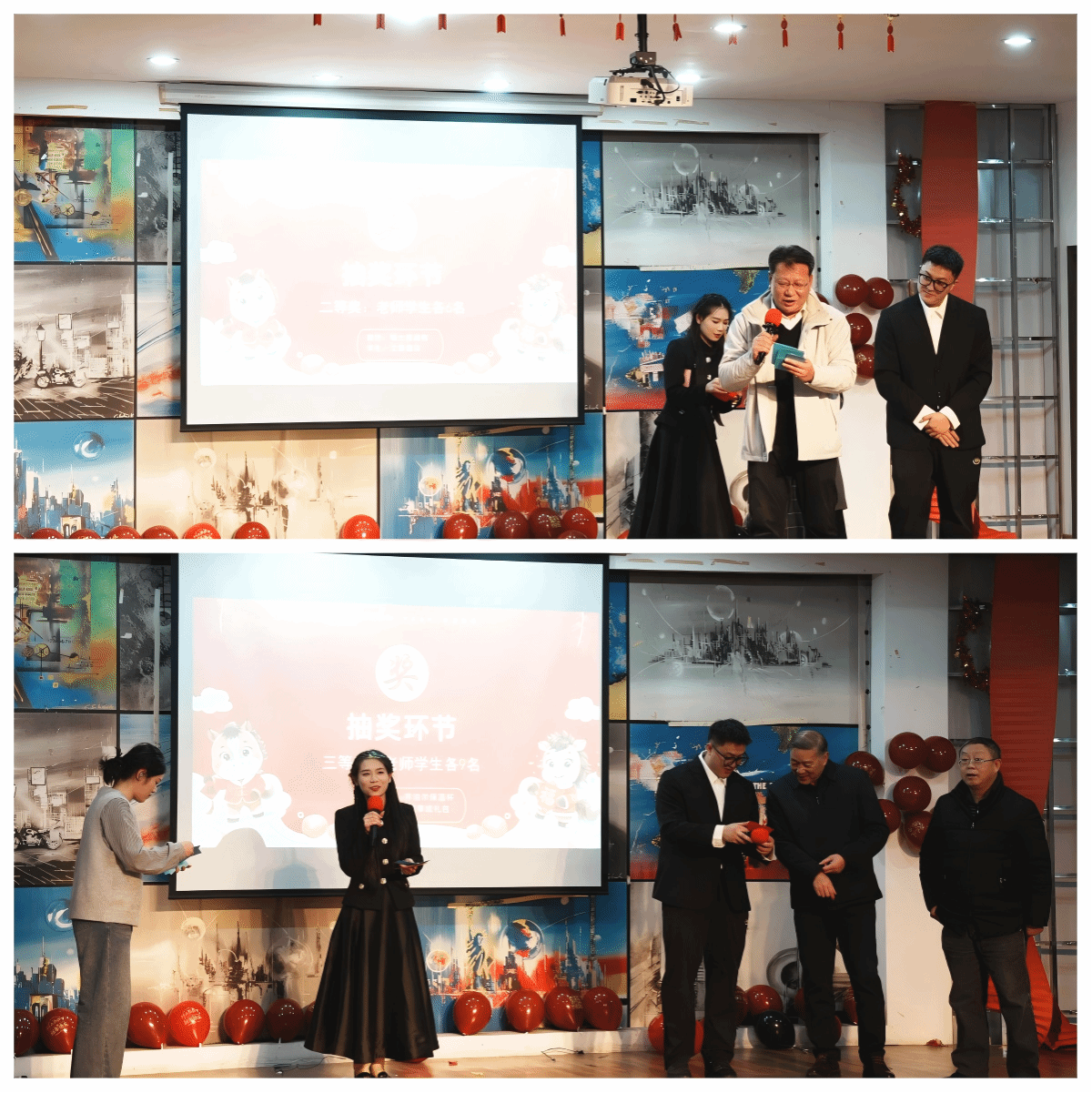 晚会还穿插了游戏、抽奖等互动环节,如套大鹅、抢凳子、猜成语,参与者有机会获得特等奖、一等奖、二等奖、三等奖。这些活动一次次将现场气氛推向高潮,师生们在欢声笑语中感受着学院大家庭的温暖。