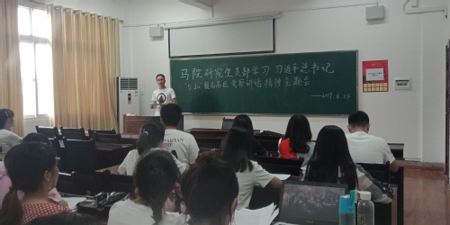 孔老师带领大家重点对习近平总书记5月20日至22日在江西考察并主持召开推动中部崛起工作座谈会的重要讲话精神进行了学习。与会研究生被习近平总书记重要讲话深深感染,大家一致认为此次总书记赣南考察,调研企业和农村,察民生、悟初心、谋发展,体现了习近平总书记始终以人民为中心,展示了以百姓心为心,与人民同呼吸、共命运的崇高风范,体现了共产党人不忘初心、牢记使命的政治品格。